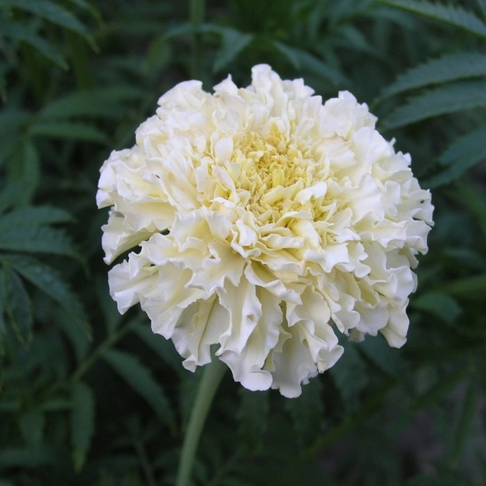 Интересная новинка в ассортименте бархатцев с кремовым оттенком соцветий. Превосходит конкурентов за счет более раннего срока цветения и однородности растений по габитусу. Кустики очень густые, оптимальной средней высоты*: 40- 50 см. Характеризуются отличным боковым ветвлением. К началу бутонизации они приобретают аккуратную шаровидную форму. Соцветия крупные (Ø 6-8 см), махровые, в изобилии украшают прямостоячие побеги до осени. Нежные цветки красиво выглядят в букете, их аромат не такой терпкий, как у большинства бархатцев. Сорт подходит для выращивания в контейнерах объемом 3-5 л. Используется для садовых цветников.