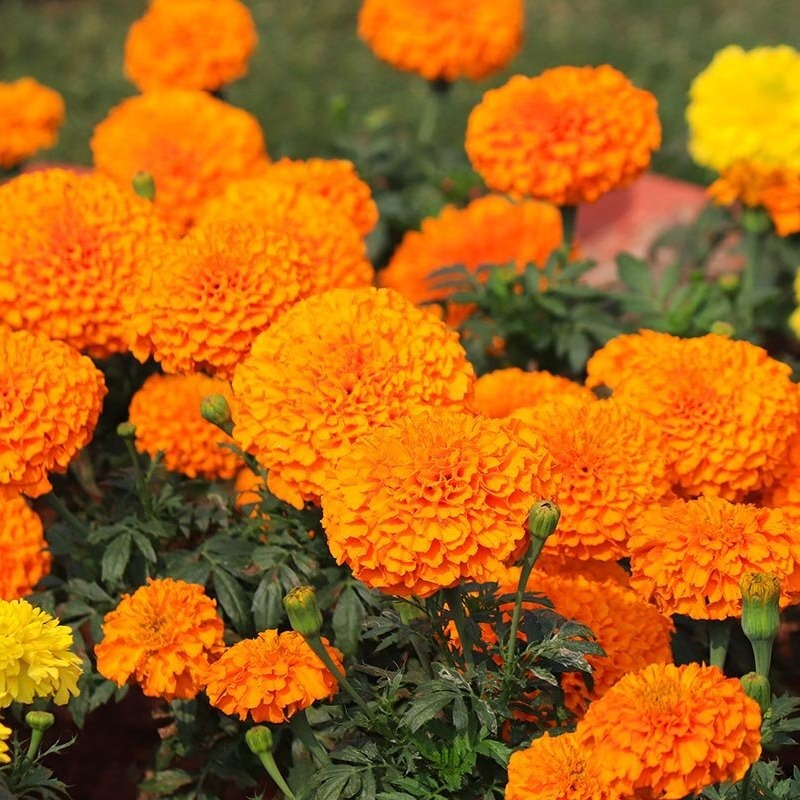 Восхитительный крупноцветковый сорт. Растения низкорослые, сильноветвистые. Соцветия густомахровые, плотные, шаровидной формы, темно-оранжевой окраски. Используют для украшения различных цветников и контейнеров, а также для срезки в букеты. Цветение раннее, обильное и очень длительное. Бархатцы отпугивают вредителей, обеззараживают почву, их аромат способен успокаивать и снимать стресс.