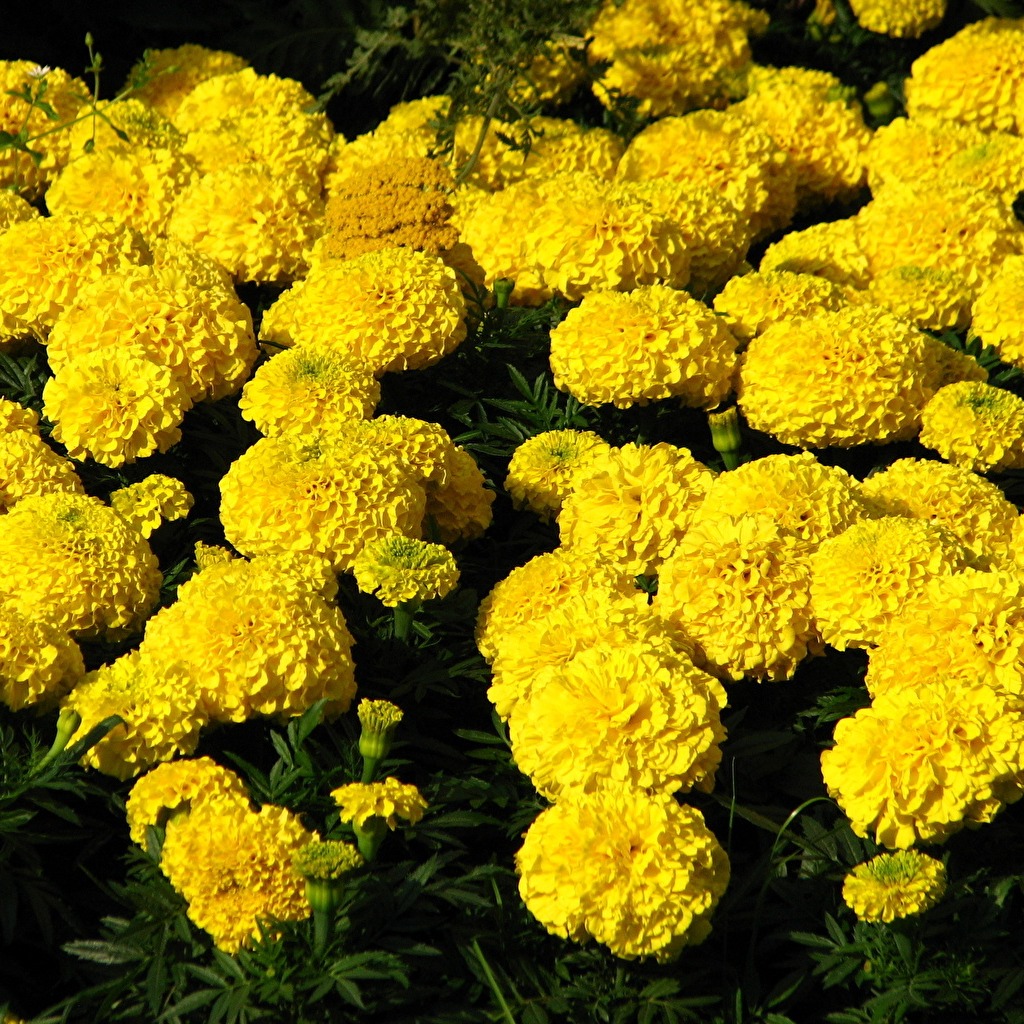 »Золотые Купола» - растение с махровыми, гигантскими цветками, роскошным и продолжительным цветением, мощным, разветвленным и компактным габитусом, золотисто - желтой окраской, высочайшей декоративностью и неприхотливостью. Они просто поражают своей насыщенной и яркой расцветкой, устойчивостью к непогоде. Цветки не теряют своей привлекательности более трех недель и заслуживают самого почетного места в вашем саду. Идеальный вариант для оформления клумб, рабаток, контейнеров и вазонов.