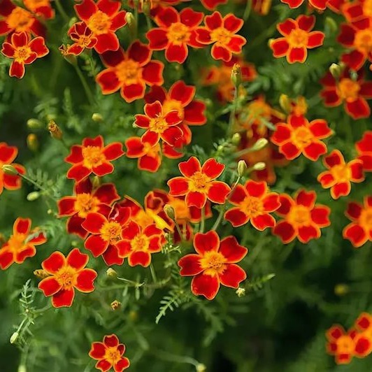 Обильно цветущий сорт для ярких нарядных цветников. Растение сильноветвистое, формирует раскидистый кустик с изящными перисто-рассеченными листьями. В пору цветения растение похоже на цветущий шар, усыпанный красно-коричневыми с желтой серединкой соцветиями-корзинками до 3 см в диаметре. Бархатцы теплолюбивы и светолюбивы, засухоустойчивы, отзывчивы на плодородие почв. Высаженные рядом с огородными культурами, они уменьшают их поражение грибными заболеваниями, особенно фузариозом, защищают от некоторых видов нематод.