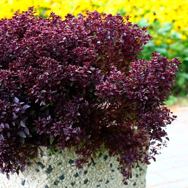 Гармоничное сочетание красоты и вкуса! Неприхотливый сорт, способен без прищипки формировать аккуратные, плотные кустики Ø 25-30 см и высотой до 35 см. Листочки мелкие, темно-фиолетовые с мягким, приятным ароматом, похожим на аромат генуэзского базилика. Идеальный выбор для кулинарных изысков! Цветение позднее, что значительно увеличивает время хозяйственного использования.