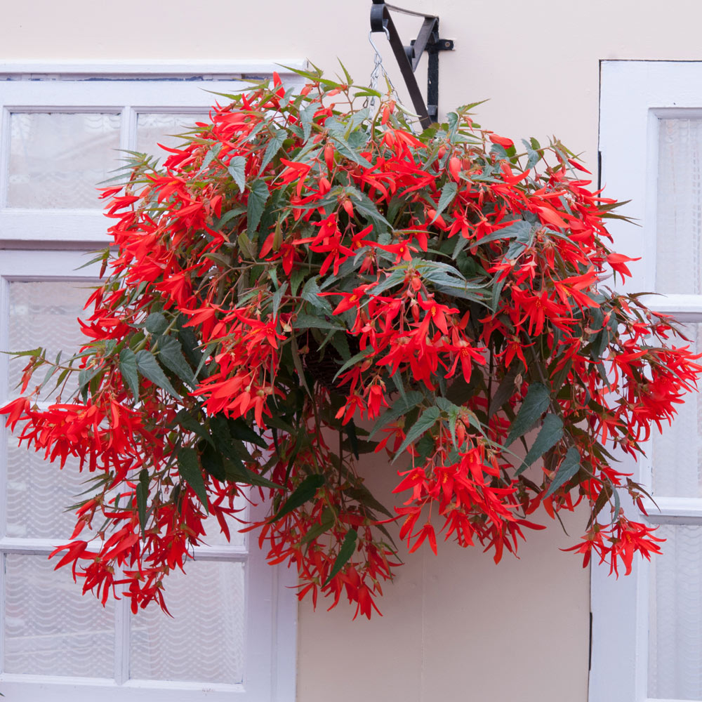 Эксклюзивный гибрид с ампельным габитусом. Пластичен к интенсивности освещения – в отличие от других клубневых бегоний, отлично цветет на ярком солнце. Листьев практически не видно за лавиной ярких цветков Ø 6-7 см. До высоты 35 см растения имеют прямостоячую форму, потом интенсивно кустятся и образуют каскады в вазонах или ковры на клумбах. Гибрид хорошо адаптирован к засухе и не страдает от дождей. Зацветает через 14-15 недель от всходов.