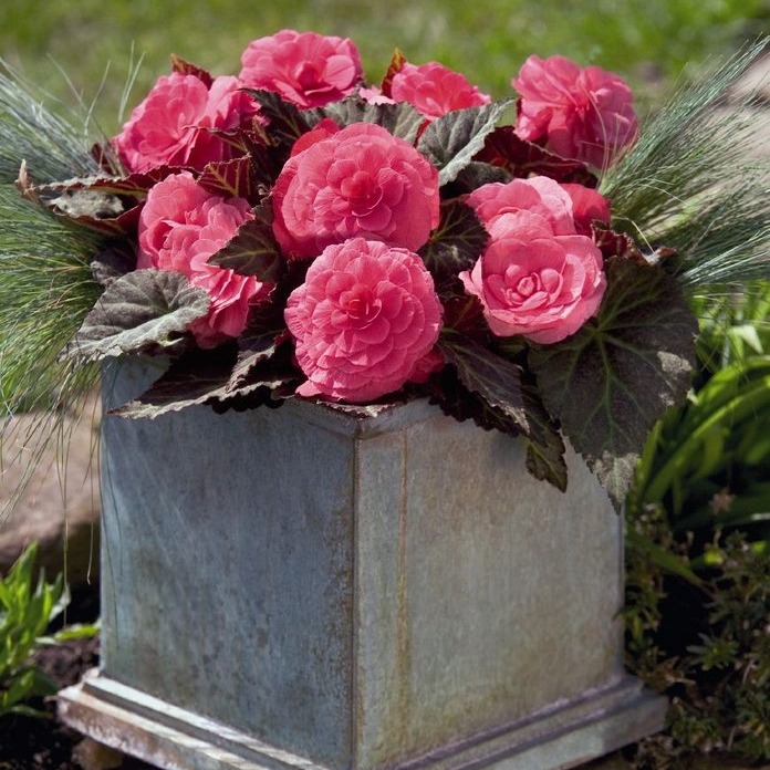 Компактное теневыносливое растение, хорошо ветвится, не требует формировки. Образует крупные махровые пастельно-розовые цветки. Особенность гибрида – бронзовая окраска листьев. Может переносить кратковременные засушливые периоды, быстро восстанавливается. Цветение раннее и продолжительное. Выращивается в кашпо, контейнерах, балконных ящиках, в саду в бордюрных и массовых посадках.Высота растения: 20-25 смШирина растения: 20-25 смДиаметр цветка: 8-10 см