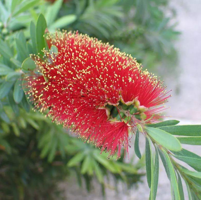 Красивотычинник лимонный (Callistemon citrinus) - это очень красивое, особенно в полном цвету, растение семейства Миртовых. Цветёт каллистемон круглый год, но наиболее обильно весной, начиная с конца марта, и осенью, с конца сентября. В пике цветения растение выглядит потрясающе эффектно благодаря сотням плакучих гибких веточек с пурпурно- красными пушистыми ёршиками цветков на верхушках, сплошь обрамляющих зелёную крону деревьев. В комнатных условиях достигает не более 1 м в высоту. Предпочитает тёплый климат, прямой солнечный свет, умеренный полив мягкой водой и кислые грунты. Подходит для выращивания в стиле бонсай. При культивировании в качестве комнатного кадочного растения летом его желательно содержать на балконе, лоджии или даче, а зимой - в прохладном светлом помещении с температурой около 5- 10°C при скудном поливе. При хорошем зимнем уходе комнатный красивотычинник может цвести с поздней весны до осени. Обрезку веток лучше производить осенью. Даже простое присутствие растения в комнате повысит качество воздуха и снизит риск простудных заболеваний. Эфирное масло, выделенное из листьев каллистемона лимонного, включает в общей сложности 24 активных компонента.