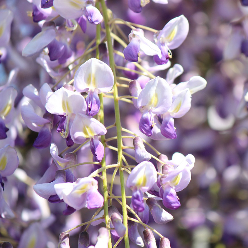 Многолетняя, древовидная лиана, достигающая высоты 15 м. Цветки голубовато-фиолетовые диаметром около 2,5 см, со слабым запахом, собраны в довольно густые, висячие кисти длиной 15-30 см. Зацветает весной до появления листьев. Сохраняет отдельные цветущие кисти в течение всего лета. Плод представляет собой густо-опушенный боб длиной до 15 см. Хорошо переносит условия города и кратковременные похолодания до –20°С. Широко используется в вертикальном озеленении в южных областях. Светолюбива. Данная культура, выращивается не только на открытом грунте, но также в условиях квартиры – в этом случае из длинной лианы формируется миниатюрный бонсай.