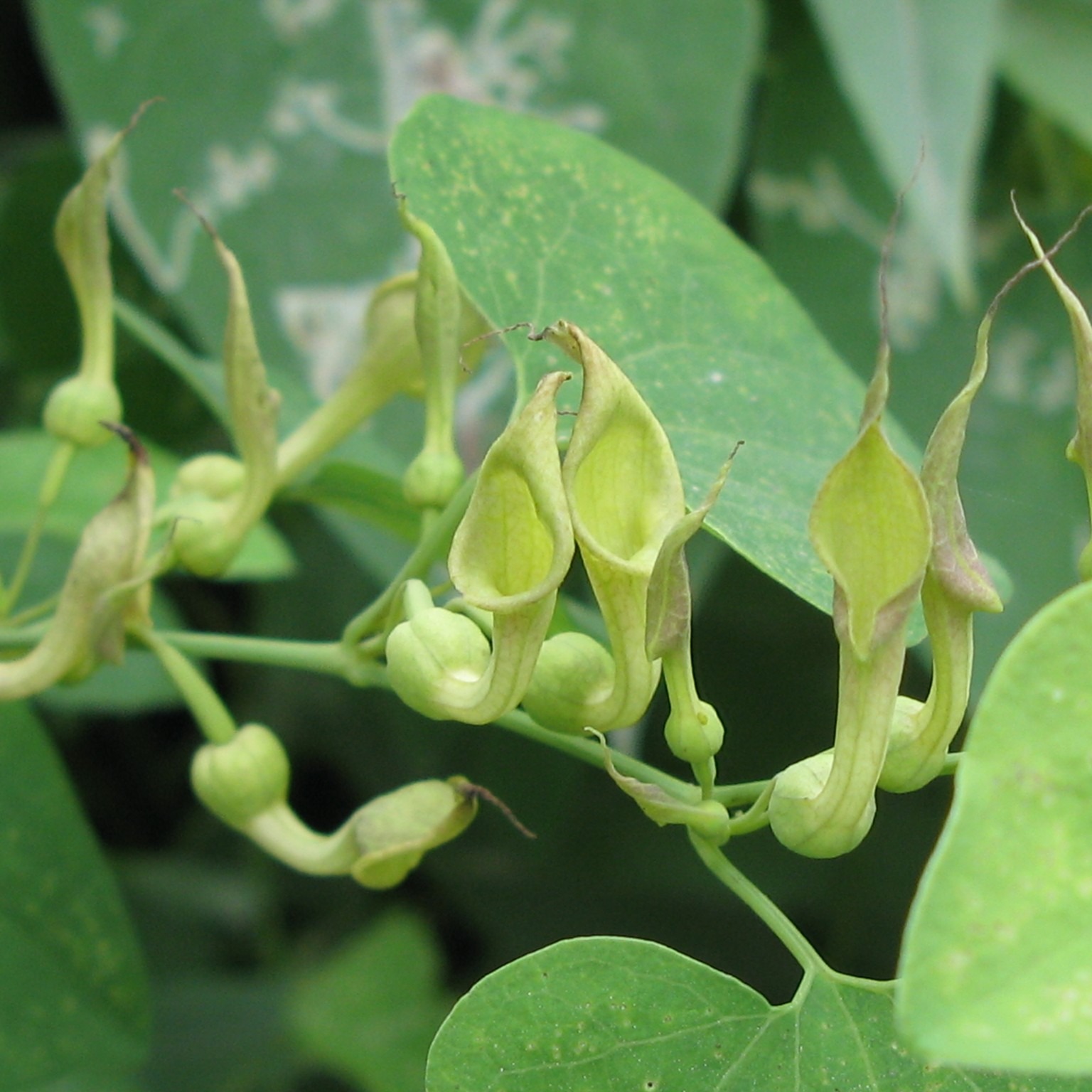 Среди многолетних листопадных лиан, удивляющих своими листьями и цветами, выделяется род кирказон, или аристолохия. Места произрастания кирказона – побережья морей и рек, болотистые луга и овраги, степная зона. Некоторые виды встречаются и в лесах России.Кирказон скрученный–это травянистая лиана. Вьющиеся стебли и сердцевидные листья на коротких черешках создают мощный объем зеленой массы. Причудливо изогнутые желтые цветки расположены в пазухах листьев, плоды – овальные коробочки. Сорт Изумрудный каскад популярен в вертикальном озеленении – он превратит скучную стену в водопад зелени. Взрослая лиана достигает в длину 7 м. Растения тенелюбивы, лучше растут на увлажненных, рыхлых супесчаных или суглинистых почвах.