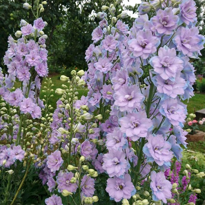Группа Тихоокеанские гибриды (Pacific giant), высотой 150-180 см. Растение развивает по 8-10 цветочных стеблей. Цветки махровые лавандово-розовые с белым глазком. Цветет в июне-июле. После основного цветения цветоносы срезают, чтобы вызвать вторую волну цветения в августе-сентябре. Используют для групповых и одиночных посадок, срезанные цветы хорошо сохраняются в воде.