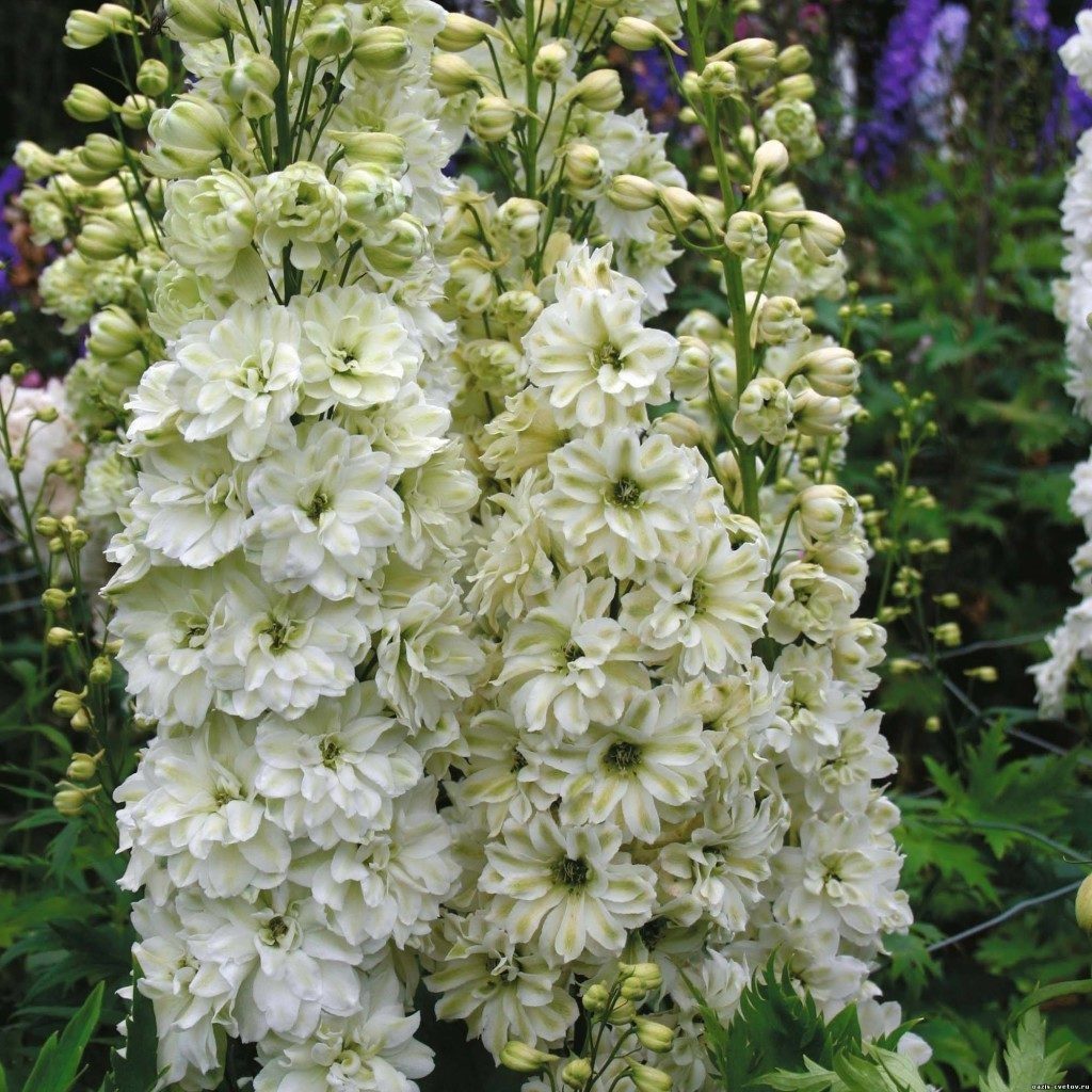 Новозеландские гиганты — признанные мировые законодатели селекционной моды среди дельфиниумов. Исключительные декоративные качества, зимостойкость, долговечность и неприхотливость, сделали эти сорта самым желанным приобретением многих профессионалов и садоводов-любителей. Растения рослые, более 2 м, с прочными здоровыми цветоносами, но все же нуждается в опоре. Необыкновенно крупные махровые цветки, поражающие воображение изысканной игрой белого и салатового оттенков, собраны в плотное, буквально набитое соцветие. Первое цветение происходит на второй год после посева, в июне-июле. Повторное — в августе. Дельфиниумы предпочитают солнечные, защищенные от ветра участки с плодородными нейтральными почвами и хорошим дренажем (не выносит переувлажнения).