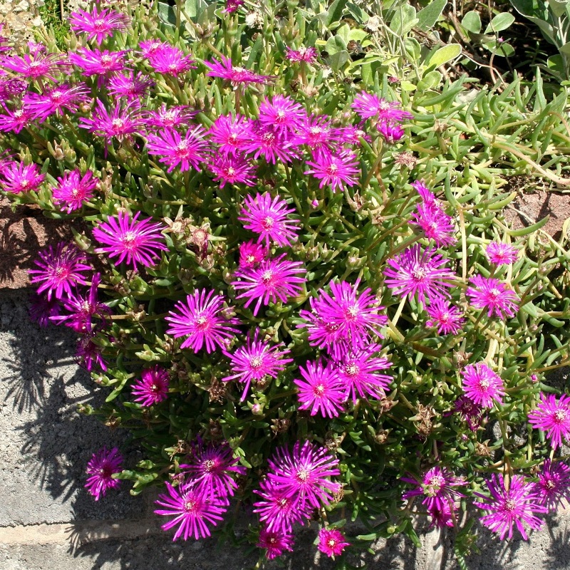 Низкорослый суккулент из семейства Аизовые. Компактный куст вырастает не более 15 см в высоту и в диаметре до 45 см. Сизовато-зеленые парные листья толстые и мясистые, похожие на узкие цилиндры, густо покрыты наростами-папиллами. Мелкие корзинчатые соцветия (3-5 см в диаметре) яркого лилово-розового цвета с кремовато-желтой сердцевиной покрывают растение плотным цветным ковром. Цветет с мая по сентябрь. Растение без укрытия зимует только в мягкие зимы при хорошем дренаже. В жаркое время года желателен регулярный полив. Предпочитает сухие, солнечные места с песчаными, хорошо дренированными почвами.