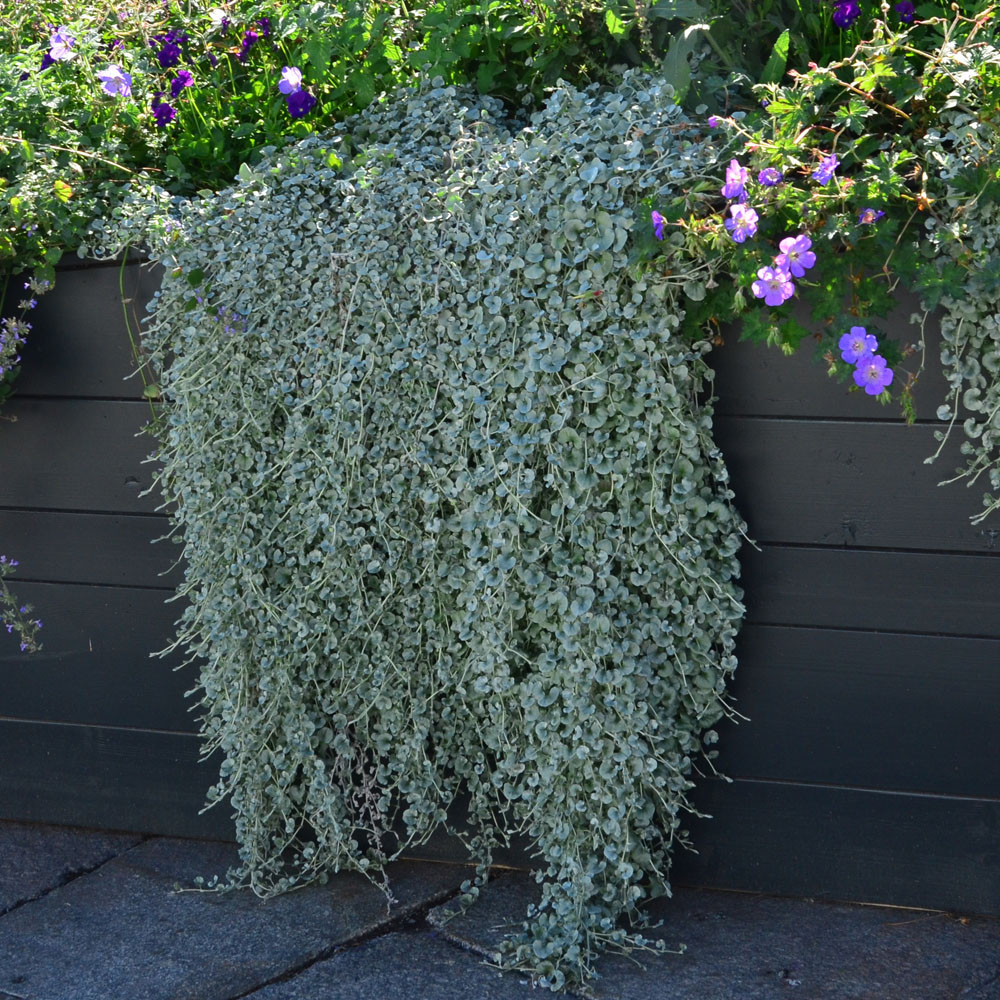 Встречайте! Перед Вами еще одна яркая представительница структурных растений! Необыкновенная серебристая окраска листьев пленит своей нежностью и изяществом, создает романтическое настроение, служит прекрасным украшением клумб и просто очаровательна в подвесных кашпо. Плети дихондры достигают 0,9-1,5 метров в длину. Отличный почвопокровник «Серебристый водопад» лучше проявляет оттенки цвета листьев на открытом месте, в тени зеленеет и уже меньше напоминает пенные струи воды. Растение многолетнее, но в наших широтах культивируется в однолетней культуре и является прекрасным дополнением к ассортименту серебристых растений, среди которых у нас лидирует однолетняя цинкерария приморская.