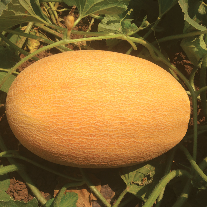 Очень ранний крупноплодный гибрид ананасной дыни. Овальные сетчатые плоды достигают вес до 4 кг., если оставлять на плети 2-3 завязи. Шкурка тонкая. Мякоть очень сладкая сочная, хрустящая с длительным послевкусием. Семенная камера маленькая, семена легко отделяются от мякоти. Лежкость высокая.