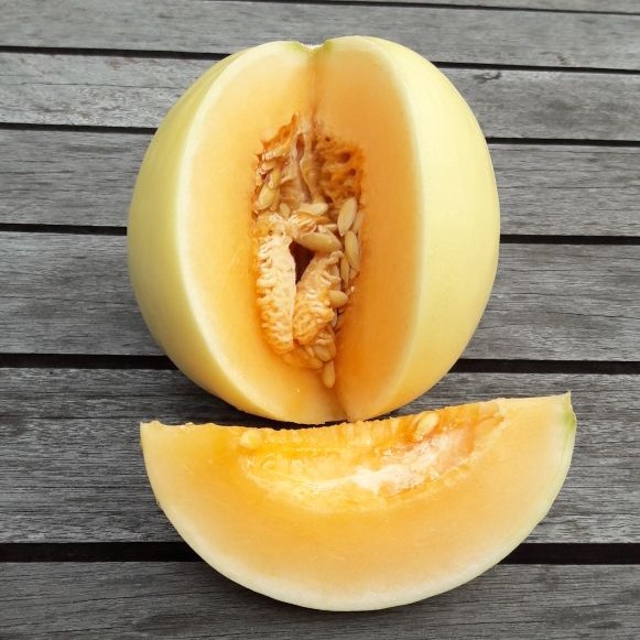Новый интересный гибрид дыни с ярко-оранжевой мякотью. Вкус и аромат – вне конкуренции! Неприхотливый и урожайный. В средней полосе лучших результатов можно добиться при возделывании в защищенном грунте. От появления всходов до созревания первого урожая проходит 90-105 дней. Гладкие небольшие желтые плоды вырастают массой около 1,5-2 кг. Они хорошо подходят для приготовления необычных фруктовых десертов: дынный мусс, мармелад, десертный дынный суп, сорбет и т.д.