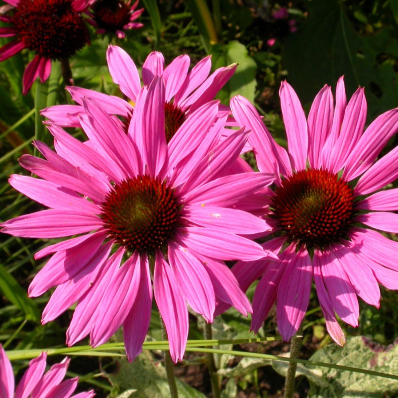 Многолетнее растение из семейства Астровых. Эхинацея пурпурно-красная формирует травянистый куст высотой до 100 см с крупными цветами 10-12 см в диаметре. Цветет в августе-сентябре на второй год после посадки.