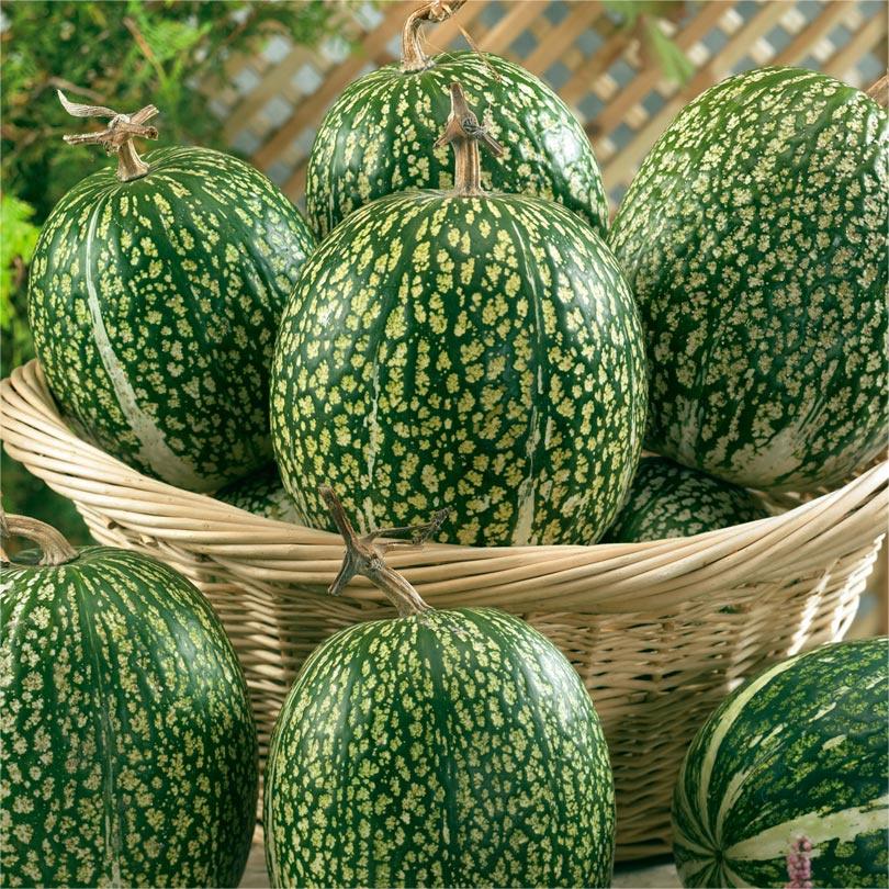 Заокеанская чудо-тыква, внешне похожая на арбуз. Уникальна своей урожайностью. Со стеблей растения, достигающих 15 м в длину, можно собрать до 30 плодов, каждый весом до 5 кг. Они могут храниться до 4 лет благодаря тому, что кожура у нее очень прочная. Кремово-белая, нежная мякоть по вкусу больше похожа на кабачковую, богата клетчаткой, отличается приятным ароматом и повышенной сладостью. Из нее готовят десерты, овощные рагу, оладьи, салаты, запеканки. Черные семечки также съедобны, это - источник витамина группы В. Фицифолия неприхотлива в уходе. Растение обладает крепким иммунитетом и повышенной холодостойкостью, терпимо относится к недостатку влаги.