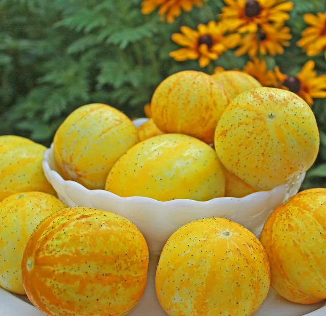 Огурец-Лимон Хрустальное Яблоко - это редкий интересный сорт который может давать плоды вплоть до заморозков, при этом с одного растения за сезон можно снять от 8 до 10 кг огурцов. Некоторые плоды обладают нежной и гладкой кожицей, другие же вырастают ребристыми с легким белым опушением. По внешнему виду плоды напоминают лимон, хотя по вкусу, светло-желтая кожура и белая мякоть плодов имеют вкус огурца, только более «благородный» и более сладковатый. Легко может расти там, где вызревают кабачки и огурцы. Селекционеры полагают, что в США данное растение, появилось в конце 1800-х годов. (семена получены от американского фермера). Это растение легко выращивать, и, кажется, ему требуется меньше тепла, чтобы созреть, чем другим сортам огурцов. Поэтому Огурец-Лимон это хороший выбор для прохладного климата. Этот необычный огурец порадует вас своим вкусом не только в свежем, но и в консервированном виде, и конечно удивит ваших соседей.
