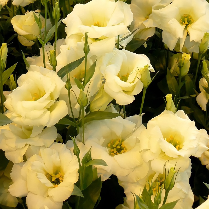 Роскошное и очень нежное однолетнее растение из семейства Горечавковые. Стебли высотой до 70 см, сильные, прочные, способные выдержать крупные, плотные, махровые цветки. Изысканные оттенки и 100% махровость сделала эту серию фаворитом на рынке срезочных лизиантусов. Довольно крупные (5-6 см) светло-желтые цветки, в пору цветения похожи на полуоткрытые бутоны розы, с атласными, спиралевидно расположенными лепестками. Предпочитает солнечные места, окультуренную почву, регулярные поливы и опрыскивания.