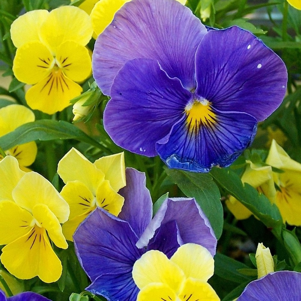 Среди огромного числа декоративных культур, пользующихся заслуженной популярностью, особое место занимает виола, эффектные сорта которой украшают проспекты и придомовые территории, сады и парки, балконы и лоджии, террасы и веранды, площади и бульвары. Эстетичный внешний вид, длительный период цветения, прекрасная приспособляемость к неблагоприятным факторам внешней среды и простота в уходе имеют первостепенное значение для любого цветовода. Садоводы украшают ими свои дачи, а некоторые виды выращивают из-за их нежного аромата. Много лет назад европейские народы полюбили этот нежный цветок и украшали им свои праздники, нарядную одежду, плели венки и гирлянды. В народе их называют «Анютины глазки» или фиалка трехцветная. Перед Вами жизнерадостная смесь «анюток», которая понравится не только взрослым, но и детям. Цветки в яркой цветовой гамме, контрастной расцветке с центральными «нарисованными ресничками»- штрихами, придающими цветкам милую непосредственность.