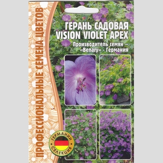 Прочный почвопокровник, устойчивое цветение, обработанные семена Apex, цветение в год посева. Цветет с мая по август. Отлично стелется, обеспечивает отличное покрытие участка.Высота растения до 60 см. Хорошо смотрится как в одиночных, так и в групповых посадках. Куст имеет редкую для герани сферическую форму. Форма куста шаровидная - в ширину он может достигать почти полметра.Агротехника: Посев: Сеять в июле - сентябре в ящики с влажным почвогрунтом. Сейте редко. Покройте семена тонким слоем компоста. Прикройте ящик стеклом, полиэтиленом или специальной крышкой. Температурный режим +18-24С. Регулярно поливайте растения.Уход: После появления рассады уберите прикрытие. Когда рассада подрастет, пересадите растения в индивидуальные горшки с компостом. Температурный режим +14-16С. Закалите рассаду, постепенно понижая температуру, поставив в холодный парник или теплицу на зиму. Затем в марте -апреле пересадите на постоянное место на расстоянии 25 см друг от друга. Регулярно поливайте растения и пропалывайте.Цветение: май - август следующего годаПредпочитает солнечное или частично затененное место и хорошо дренированную почву. Удаляйте отцветшие головки и слегка обрезайте побеги, чтобы поддерживать хорошую форму растения.