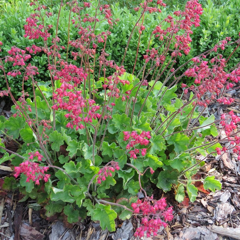 Популярный декоративный многолетник. Сорт отличается своим прекрасным видом и ярко-розовой окраской цветков. Растение имеет крупные размеры и высокий рост, что делает её идеальной для использования в групповых посадках, рабатках и каменистых садиках. Представляет собой крупный куст со стеблями высотой до 60 см. Листья этого растения очень красивые, они большие, плотные и имеют разнообразную окраску - от белоснежной до тёмно-малиновой. Цветки являются настоящим украшением этого растения, они ярко-розовые и создают неповторимый эффект в любом саду. Очень устойчива к зимним морозам и не требует особого укрытия. Период цветения начинается в июне и продолжается до августа.