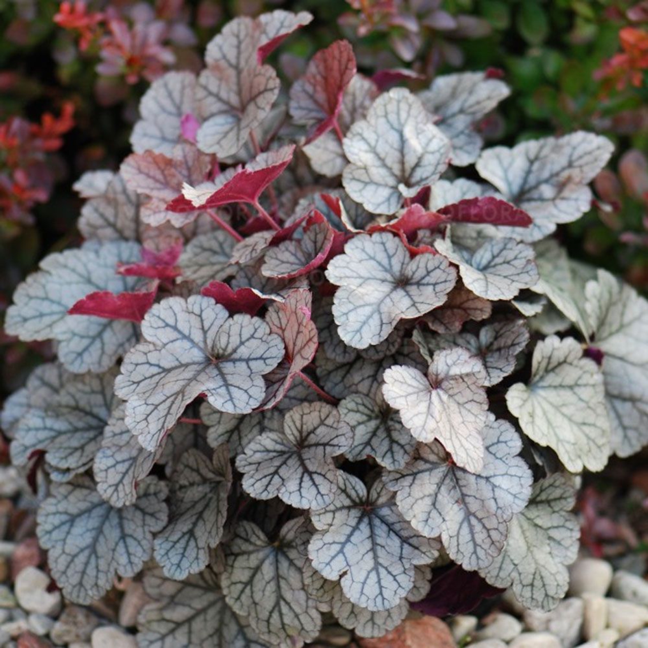 Многолетнее растение с декоративными листьями. Формирует розетку очень красивых листьев с уникальной окраской – на зеленом фоне затейливая сеть бордовых прожилок. Яркой особенностью является появление серебряного муара на листьях в зависимости от освещения. Декоративная окраска листьев становится ярче при осенних понижениях температуры. Растение неприхотливое и холодостойкое.