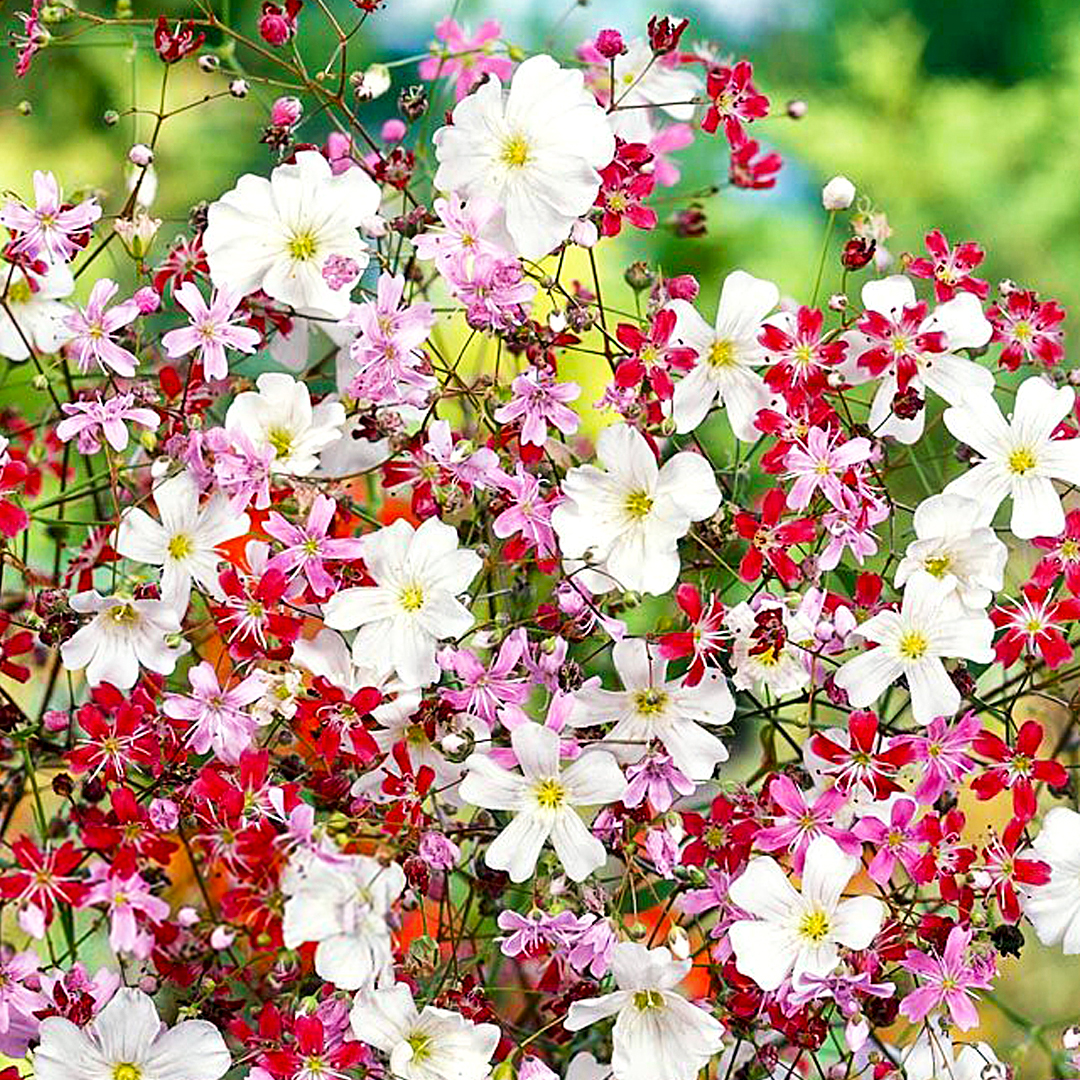 Однолетнее ажурное растение до 50 см высотой, обильно ветвящееся почти от основания куста, что делает его шарообразной формы. Листья мелкие, ланцетные. Цветки не более 1 см в диаметре белоснежные и малиновокрасные, махровые, полумахровые и простые, на тонких, слабо опушенных цветоножках, собраны в широкие, раскидистые метельчатые соцветия. Цветет обильно, но непродолжительно, в июне — июле. Молодые растения зацветают через 40-50 дней после посева семян. Идеально подходит для клумб, рабаток, групповых и одиночных посадок, миксбордеров, а также для срезки.