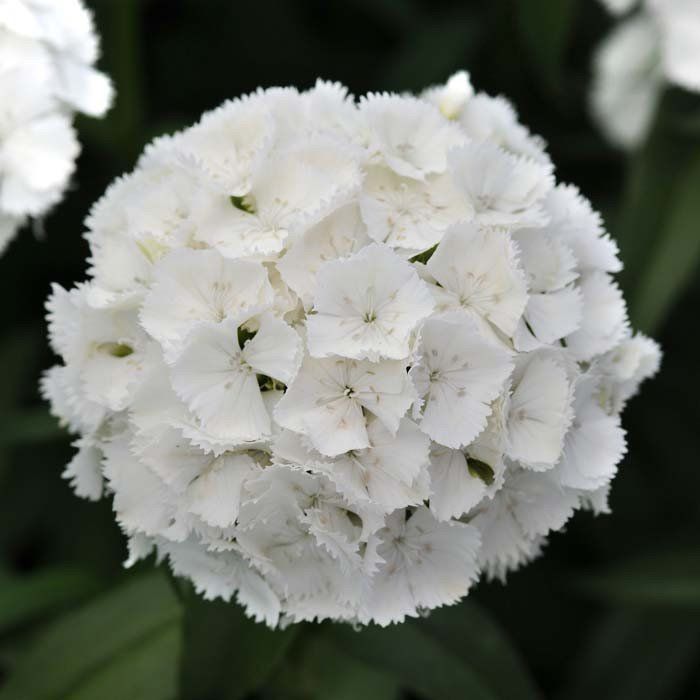 Декоративное садовое растение, выращиваемое как двулетнее, высотой до 60см с плотными, немного приплюснутыми шапками ярких цветков. Стебли прямые, прочные, узловатые, многочисленные. Многочисленные белоснежные ароматные цветки, до 2см в диаметре, собраны в щитковидные соцветия 8-12см в поперечнике. В отличие от других видов гвоздики нетребовательна к свету, отличается холодо- и морозоустойчивостью. Располагать посадки гвоздики можно где угодно и в любых вариантах. Идеальна для срезки. В любом случае она будет являться прекрасным украшением.