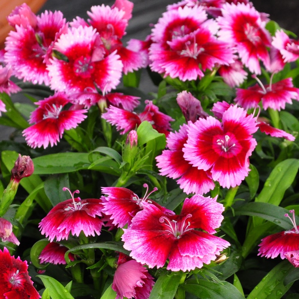 Серия гвоздики Чиба – это межвидовой гибрид гвоздики с самым ранним цветением, очень компактным габитусом растений и хорошим ветвлением. Отличается мощными цветоносами с множеством прекрасных цветков, малиновых в центре и белых по краям зубчатых лепестков. Растения отлично приживаются и быстро разрастаются, выпуская обилие бутонов с апреля до осени. Цветение обильное и продолжительное, устойчивость к непогоде высокая. Относительно небольшая высота растения, позволяет выращивать его как горшечное, а также использовать для оформления бордюров и озеленения всевозможных клумб. Выращивая ее рассадным способом, можно получить растения с цветением уже в это же лето.