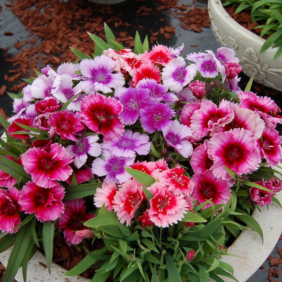 Гвоздика китайская Диана сочетает в себе раннее цветение и компактный габитус с большими одиночными цветками и широким выбором окрасок. Выращивается в контейнерах, горшках, высаживается в открытый грунт для украшения альпинариев, рокариев. Новые бутоны формирует весь теплый сезон. Хладостойка, выдерживает яркое солнце.