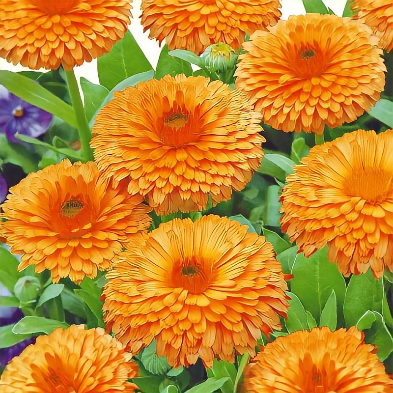 Календула — яркое «солнечное» растение, ее цветовое воздействие благоприятно сказывается на нашем настроении. Являясь растением засухоустойчивым, она хорошо переносит жаркие полуденные часы и отлично подходит для балконов южной и юго-западной экспозиции. Ее соцветия разбавляют «веселыми» рыжими «брызгами» самые разные балконные цветники. Растение высотой 45 см, ветвистое, компактное. Цветет с июня по сентябрь. Соцветия крупные, 7-9 см в диаметре, густомахровые, черепитчатые, оранжевые. Календула светолюбива и предпочитает легкие почвы, холодостойка — выдерживает до -5°C.
