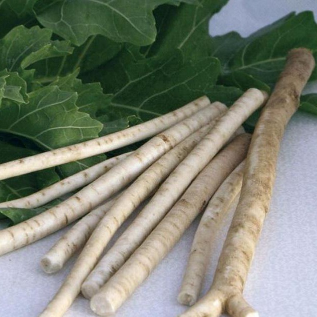 Удивительное, набирающее всё большую популярность пряно-ароматическое многолетнее растение. С успехом заменяет хрен и превосходит его по многим характеристикам! Корни более крупные, ровные и гладкие, намного удобнее в обработке и достигают массы 500-600 г уже к концу первого года выращивания. Растения не разрастаются и не засоряют огород, выглядят декоративно в течение всего сезона. В пору цветения формируют раскидистые соцветия с медовым ароматом, которые украсят любой цветник. В кулинарии используют корни, мясистые побеги и молодые листья так же, как обычный хрен. Выкопанные корни превосходно хранятся в подвале всю зиму.