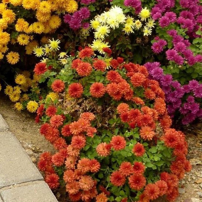 Хризантема – один из немногих цветков, который будет радовать Вас своими яркими красками поздней осенью. Предпочтительно выращивание в оранжереях, возможно выращивание в открытом грунте. Растение прямостоячее, высотой 45-60см. Жёлтые, оранжевые, белые, розовые и красные цветки собраны в махровые, полумахровые и одиночные яркие соцветия диаметром 5-6см. Очень долго стоит в срезке. Прекрасно сочетается с декоративными хвойными кустарниками или декоративными травами. Хорошо смотрится в сочетании с такими цветами, цветущими до заморозков, как космея и календула. Возможно использование в горшечной культуре.