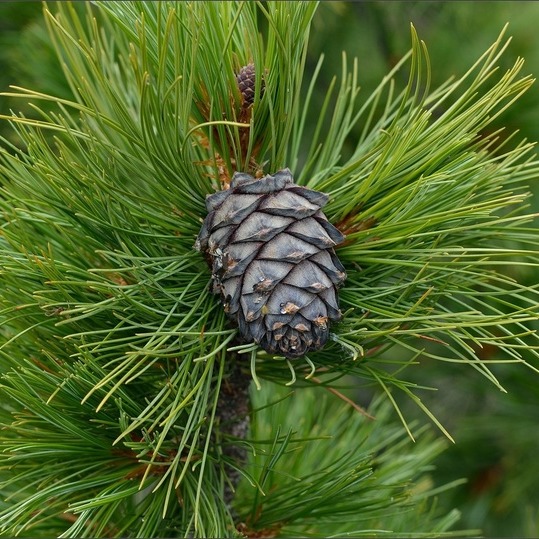 Красивое мощное дерево высотой до 40м. Крона конусовидная, густая, кора у молодых деревьев гладкая, серая. Ветки расположены в сближенных мутовках. Хвоя темно-зеленая, до 13 см длиной, хвоинки собраны по 5 штук в пучках. Продолжительность жизни хвои 5-6 лет. Шишки прямостоячие, светло-бурого цвета, крупные, до 13 см длиной, с многочисленными орешками. Растет очень медленно, особенно в первые 5 лет. В 20 лет достигает высоты всего 2,5 м. Плодоносить начинает через 20 лет после посадки. Прекрасно растет на легких суглинках, достаточно плодородных, с хорошим дренированием. Светолюбив, в молодом возрасте обладает хорошей теневыносливостью, отлично развиваясь под кронами деревьев. Используется для озеленения парков, загородных и приусадебных зон, в групповых и одиночных посадках, а также в сочетании с кустарниковой растительностью. Размножается семенами.