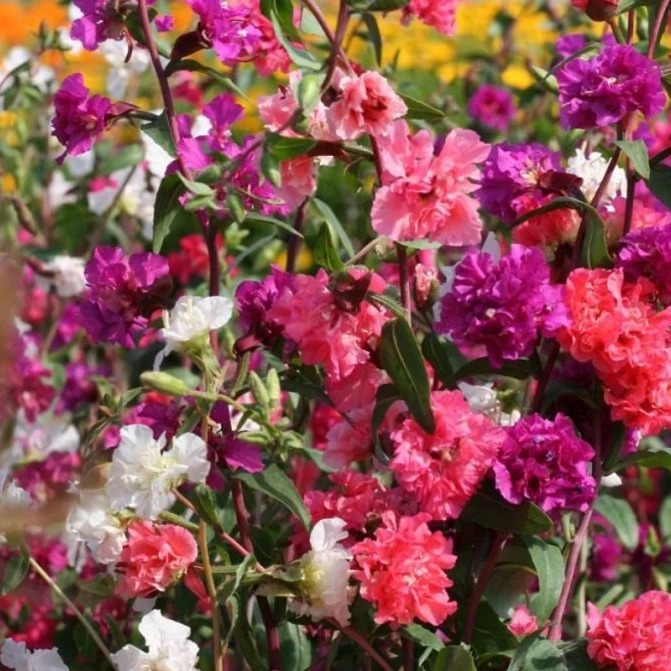 Однолетник. Высота растения 30-40 см. Кустик хорошо разветвленный, весь усыпан махровыми цветками разного цвета, собранными в густые соцветия колосья. По внешнему виду напоминает миниатюрную шток-розу. Диаметр цветка 5 см. Смотрится очень эффектно. Цветение с июля по сентябрь. Используется для выращивания в рабатках, миксбордерах, на балконе и на срезку.