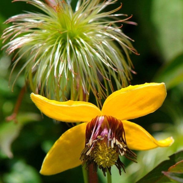 Неприхотливая холодоустойчивая лиана вырастающая до 2,5 м в высоту. Зацветает через 6-8 недель после всходов, на следующий год цветы появляются ранней весной на молодых растениях. Соцветия золотисто жёлтые 7-8 см в диаметре, фонариковидной формы, немного наклонённые, состоящие из четырёх чашелистников. После цветения шелковистые, перьевидные семенные коробочки придают растению очень привлекательный вид, особенно это становится видно, когда растение скинет листву. Возможно использование как контейнерное растение, почвопокровное растение или как вьющееся растение для создания живых изгородей.