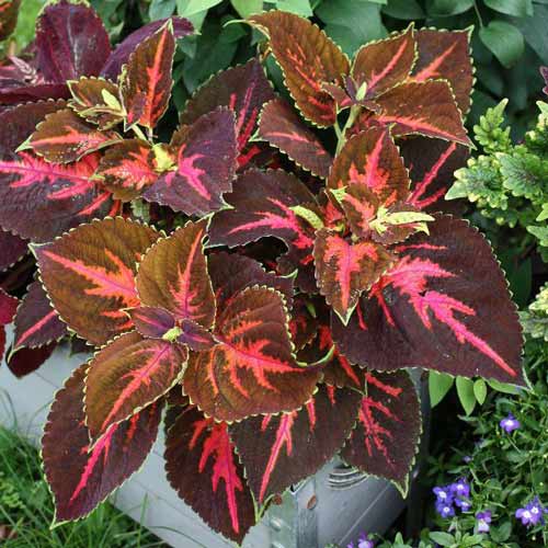 Высокорослый (40-45 см) гибрид колеуса с большими, декоративными цветными листьями. Рекомендуется для групповых посадок или как фон для более низких цветов.