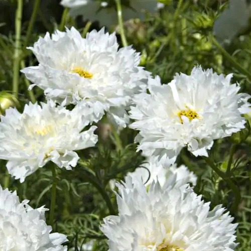 Декоративное растение с ажурными сильнорассеченными листьями, высотой около 80 см. Соцветия – махровые корзинки диаметром 7-10 см на крепких стеблях. Великолепно выглядят на клумбах и в бордюрах, особенно большими массивами. Прекрасный материал для срезки.