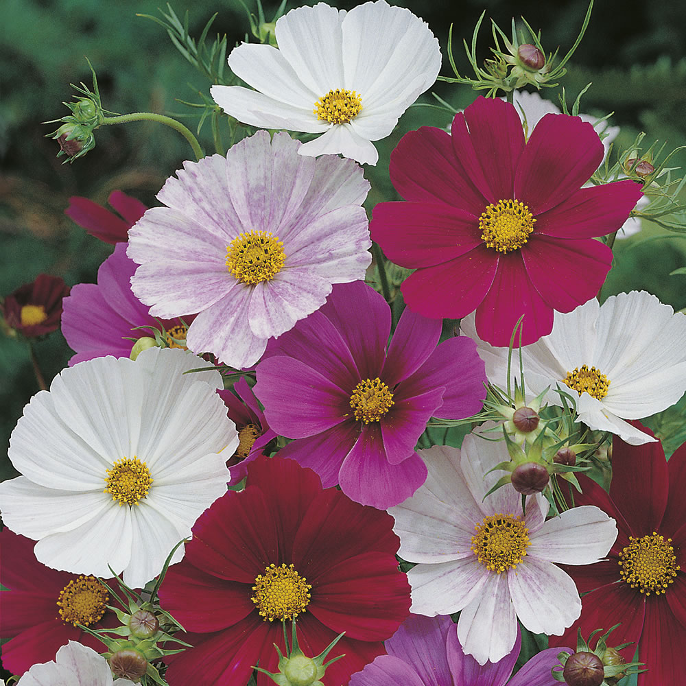 Роскошная однолетняя высокорослая смесь. Стебли густоветвистые, прямостоячие, высотой 120 см. Листья ажурные, придают пышность кусту. Цветки очень крупные, широко раскрытые, белые, розовые и красные. Это растение сочетает в себе неприхотливость и устойчивость к неблагоприятным условиям, а также очень длительное цветение.