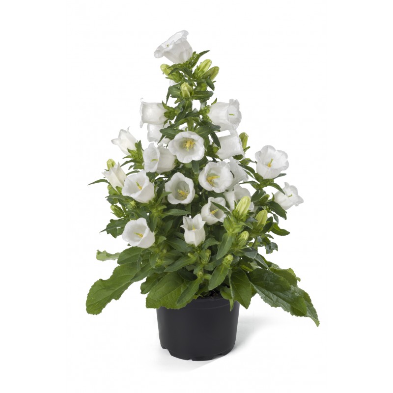 Великолепная Серия компактных колокольчиков, цветущих уже в год посадки. Чаще выращивается в качестве горшечной культуры, но можно вырастить и в саду. Растение формирует компактный кустик (высотой до 25 см) в форме рождественской ели с множеством белоснежных цветков-колокольчиков диаметром 4,5 см. Пользуется широким спросом, может служить прекрасным подарком. Растение также можно использовать для оформления патио (балкона). Чувствительно к длине светового дня - легко программируемая культура. При выращивании в качестве горшечной культуры посевы проводят с августа по сентябрь (цветение с января по июнь).