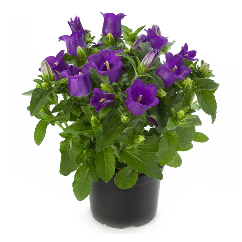Великолепная Серия компактных колокольчиков, цветущих уже в год посадки. Чаще выращивается в качестве горшечной культуры, но можно вырастить и в саду. Растение формирует компактный кустик (высотой до 25 см) в форме рождественской ели с множеством темно-синих цветков-колокольчиков диаметром 4,5 см. Пользуется широким спросом, может служить прекрасным подарком. Растение также можно использовать для оформления патио (балкона). Чувствительно к длине светового дня - легко программируемая культура.