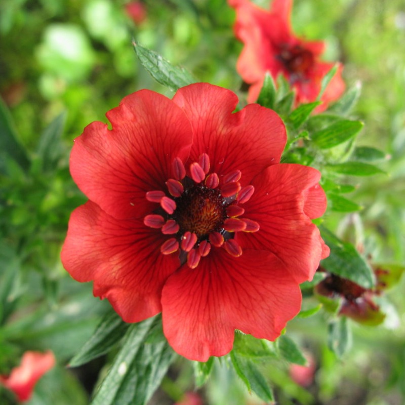 Привлекательное травянистое  растение высотой 50 см с прикорневыми пальчатыми темно-зелеными листьями, до 30 см длиной. Цветки крупные, 3-4 см в диаметре, красно-розовой окраски, собраны в метельчатые соцветия. Лапчатка зимостойка, светолюбива, хорошо растет на рыхлых питательных почвах с достаточным содержанием извести.