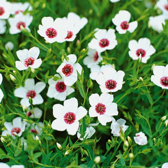 Linum grandiflorumОдин из лучших и популярных сортов крупноцветкового льна. Кустики обильно ветвящиеся, прямостоячие, высотой 50-60 см. Многочисленные цветки Ø3-4 см собраны в рыхлые щитковидные соцветия. Цветение раннее и продолжительное, с июня до окончания сезона. Растения неприхотливые, холодостойкие, светолюбивые. Прекрасно смотрятся в групповых посадках на клумбах, рабатках и миксбордерах, используются в мавританском газоне. Подходят на срезку для составления живых и сухих букетов.Посев в открытый грунт весной в самые ранние сроки, как только позволит почва. Всходы появляются через 8-12 дней. Их прореживают или рассаживают. Возможет посев под зиму, в октябре. Растениям необходимы регулярные поливы, прополки, рыхления и подкормки.