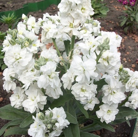 Левкой Дюймовочка привлекает внимание крупными махровыми душистыми цветками. Он цветет намного продолжительней, чем другие сорта. Невысокий (не более 35 см) компактный куст идеален для контейнерной культуры. С его помощью можно создать привлекательные композиции в местах отдыха – в саду у скамеек, на балконах, где вы оцените его сладкий аромат. Хорош он также в бордюрах и на альпийских горках.