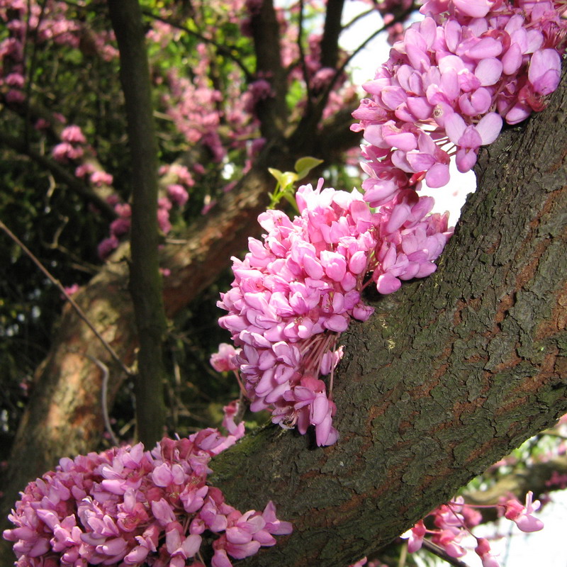 Элегантное декоративное дерево высотой до 18 метров с раскидистой, шатровидной кроной и черно-серой корой, в то время как его побеги окрашены в яркие малиновые тона. Его название связано с осенним изменением окраски листвы на насыщенные багряные оттенки. Цветение начинается в апреле и продолжается до мая, когда дерево щедро усыпано цветами, а плоды созревают в сентябре и октябре. В естественной среде обитания оно встречается в Северной Америке, простираясь от Нью-Йорка до Флориды и на запад до Техаса, а в культуре широко распространено на Черноморском побережье Кавказа и в странах Средней Азии. Это дерево прекрасно дополняет ландшафтный дизайн, легко переносит обрезку, а его цветы и молодые побеги являются съедобными и находят применение в сыром и маринованном виде; корни и кора используются в фитотерапии, а само растение ценится как отличный медонос.