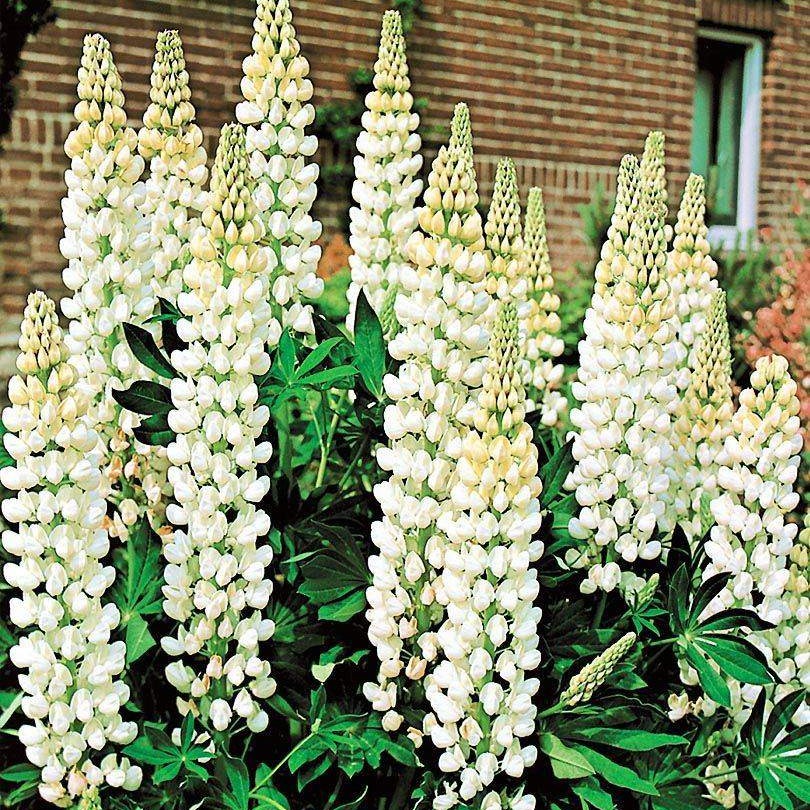 Многолетнее неприхотливое растение, высотой до 100 см. Листья крупные, соцветия – гигантские цилиндрические кисти чисто белого цвета длиной 40 – 50 см. Цветки мотылькового типа, диаметром до 2 см, часто двуцветные. Светолюбивое, зимостойкое растение. Обогащает почву азотом. Используют в одиночных и групповых посадках с другими многолетниками в миксбордерах, высаживают группами на газоне. Эффектны в букетах.