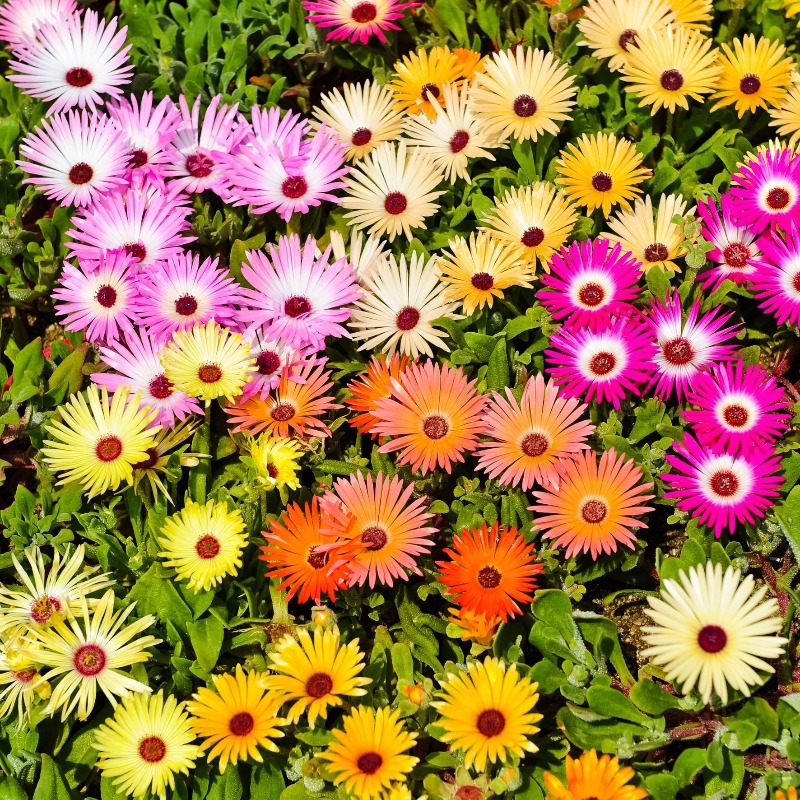 Стелющееся однолетнее растение. Высота 10 см. Цветки многочисленные, диаметром 3-4 см. Листья суккулентные. Растение очень привлекательно благодаря многочисленным ярким цветкам, закрывающимся в пасмурную погоду и на ночь. Высаживают большими группами, а также в бордюры. Очень подходит для участков, где отцвели луковичные растения.
