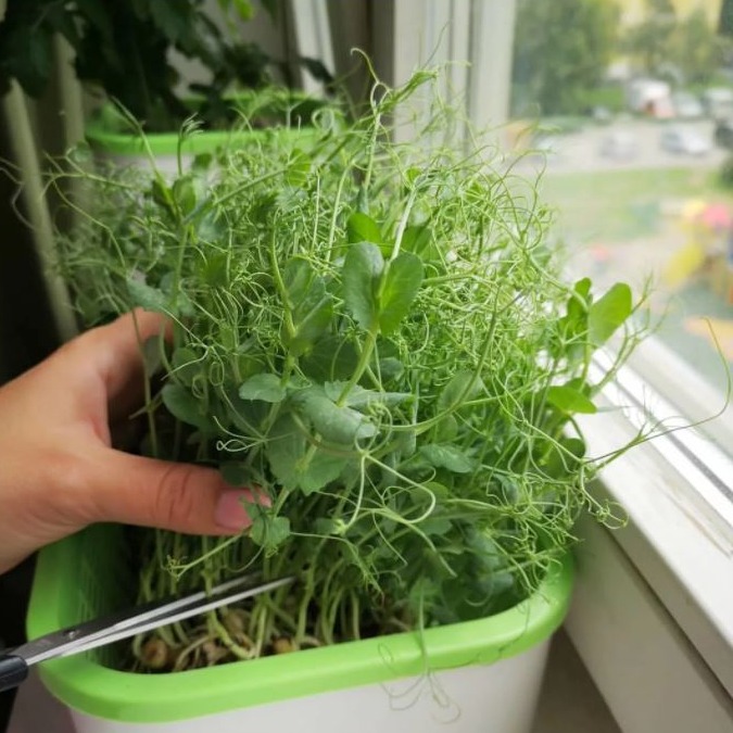 Микрозелень – это молодые растения в фазе первой пары настоящих листьев. Пищевая ценность таких растений значительно выше, чем взрослых растений. Микрозелень содержит максимальное количест во полезных макро- и микроэлементов, витаминов и других натуральных биологически активных веществ. Готова к срезке и употреблению на 7-10 день после посева! Эта необычная микрозелень состоит из усатого (безлисточкового) типа гороха. Отличается замещением листочков дополнительными усами. Проростки гороха, в отличие, от семян, – пища, которая легко усваивается организмом. Благодаря наличию минералов, микроэлементов, а также витаминов группы В – это отличный ингредиент диетических и вегетарианских блюд. Микрозелень обладает сочным, сладковатым вкусом. Употребляется в свежем виде, отлично подходит для добавления в салаты, для украшения блюд и десертов.