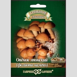 Один из самых популярных грибов японской кухни. Содержит целебные вещества подавляющие развитие стафилококка. Шляпка диаметром 3–8 см, оранжево-коричневая, полусферическая с плоской верхушкой. Внешняя сторона шляпки покрыта блестящей слизью органического происхождения—густой и обильной у молодых грибов, а у взрослых грибов водянистой и менее обильной. Ножка длиной 5 см, тонкая. Фолиота намеко удобен в приготовлении и является отличной составляющей меню настоящих гурманов. Маслянистая пленка в процессе приготовления исчезает и гриб приобретает хрусткость и приятный пряно-грибной вкус. Советы по разведению: Выращивают как на открытом воздухе, так и в закрытых помещениях при температуре от 10 до 27°С. Благоприятное время для высадки грибов на древесную основу в природных условиях — в апреле — мае или августе, в помещении — в течение всего года. В качестве древесной основы используют несвежее (1 месяц после рубки), влажное (влажность минимум 50-60 %) бревно лиственных пород (бук, граб, ольха, осина, клен, береза, тополь, ива, каштан, дуб) без признаков гнили, с корой и без веток, диаметром 20-50 см, длиной 30-50 см. Если древесина сухая ее замачивают в воде на 2-3 дня, избытку воды дают стечь. Пропитанную древесину помещают в теплое, проветриваемое помещение на несколько дней.
