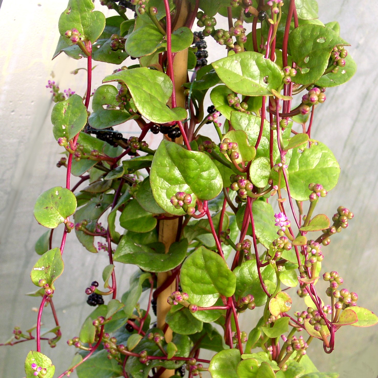 Экзотическая базелла- королева лиан, выносливая и формирующая пышные зеленые украшения, гармонирующие с цветами на клумбе. Драпировки из нее живописно смотрятся на балконах, изгородях, придают интересный облик дому. Эта культура претендует на особое место по праву – она заплетается в сочные яркие узоры и цветет до 4-х раз в год. Красиво декорирует интерьеры в кашпо, используется как ампельное растение также для озеленения зимних садов. Важный бонус - широкое использование в пищу. Урожай из листьев собирают через 1-10 недель от появления всходов, а после обильного цветения - очередь за мясистыми ароматными плодами. Побеги и листья растения быстро наращивают питательную массу, она цветет белыми цветками, для еды используют в вареном или тушеном виде. За сходство с овощной культурой ее называют индийским, цейлонским или винным шпинатом, который по вкусу напоминает зелень шпината или салата, с легкостью их заменяет.