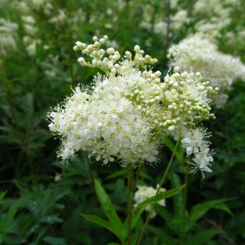 Лабазник вязолистный, нар. медовник, царица лугов, медунка болотная - многолетнее растение (100—160 см высотой), с толстыми, ветвящимися горизонтальными корневищами, из которых к середине лета вырастают цветоносные побеги. Стебли с крупными перисторассеченными листьями. Соцветия метельчатые густые, состоящие из мелких кремовых очень душистых цветков, с чуть горьковатым медовым запахом. На одном растении до 8-ми соцветий. Особенно хорош в посадках большими группами на фоне газона, в миксбордерах и цветниках, около водоемов. В лекарственных целях используют все части растения — траву, цветки и корни. Таволга применяется в официальной медицине многих стран Западной Европы, но особенно широко её применение в народной медицине. Учитывая наличие салициловой кислоты и дубильных веществ настой верхушек стеблей с листьями и цветками рекомендуют при ревматизме, подагре, кожных заболеваниях, болях в желудке, как мочегонное средство при болезнях мочевого пузыря, почек и различных видах водянки, как внутрь, так и в виде компрессов. Как потогонное настой таволги употребляют при простудных заболеваниях. Наружно отвар травы используют для промывания ран, язв, гнойников, фурункулов, для промываний глаз при конъюнктивитах, для лечения различных кожных заболеваний и в косметической практике, моют голову для усиления роста волос. Настойки и мази из травы обладают антибактериальным действием, способствуют эпителизации, могут использоваться как ранозаживляющее средство.