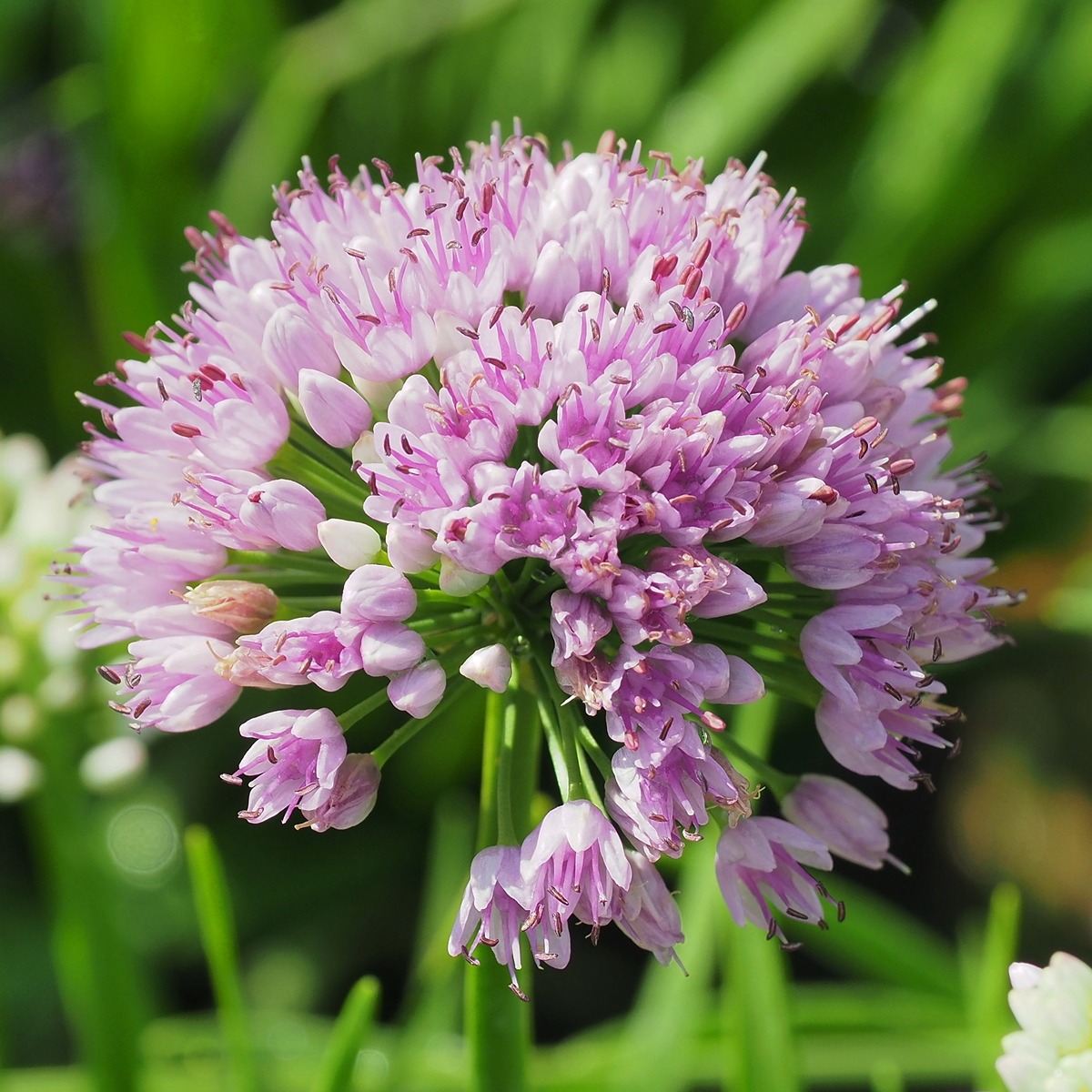 Солнцелюбивая культура отзывается на степень освещенности интенсивностью окраски соцветий и листьев, но легкая полутень вполне допустима. К почвам нетребовательна, однако предпочитает хорошо дренированный, нейтральный грунт. Зацветает растение, как правило, в первой половине лета сиренево-розовыми пушистыми соцветиями, которые удачно сочетаются с сизо-голубой зеленью. Цветоносы высокие, до 30 см, диаметр самых крупных соцветий около 6 см. Молодые листья декоративного лука содержат витамины C, D, E., которые укрепляют иммунитет, и используются в кулинарии для приготовления витаминных салатов.
